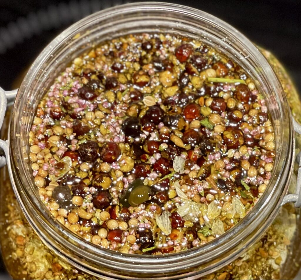 Din personlige gin er komponeret til dig af Anita i anledning af din 40 års fødselsdag – en opus af enebær, koriander, angelikarod, frisk rød grapefrugtskal, hjertensfryd, blæretang, humle, baldrian, kardemomme, galangarod, lyng samt mango, med et strejf af honning og bourbon