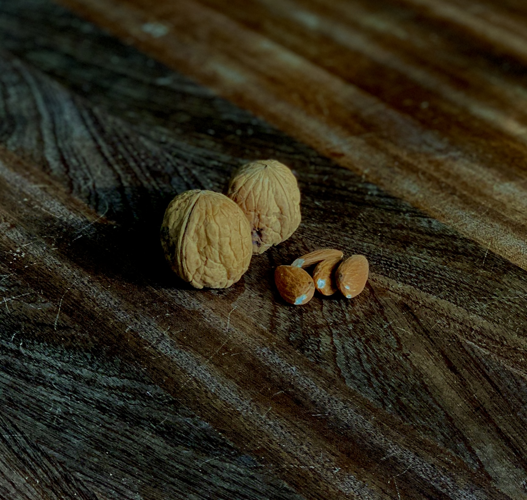 Nødderne: Kastanje, valnød, hasselnød, mandel.